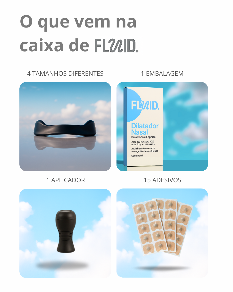 Respire melhor e aumente seu desempenho. O Fluid amplia o fluxo de ar pelas vias nasais, melhora a oxigenação e ajuda você a treinar com mais resistência e foco. Leve, discreto e reutilizável, é o aliado ideal para atletas e praticantes de esportes.